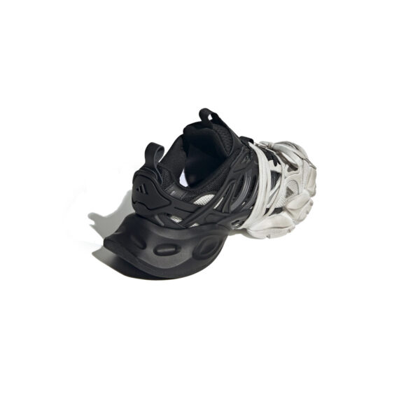 Cholewka wykonana z przewiewnej siateczki z syntetycznymi wzmocnieniami zapewnia idealne dopasowanie i trwałość, a masywna, dobrze amortyzowana podeszwa gwarantuje komfort podczas całodniowego noszenia. Klasyczne połączenie bieli i czerni nadaje butom uniwersalności, dzięki czemu pasują do każdej stylizacji — od sportowej po streetwearową.