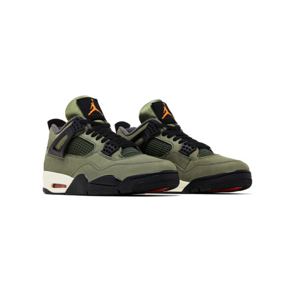 Pierwotnie wydane w 2005 roku w liczbie zaledwie 72 par, Air Jordan 4 Undefeated były symbolem ekskluzywności i kolekcjonerskiej rzadkości. Edycja 2025 zachowuje kultową kolorystykę inspirowaną stylem militarnym: oliwkowy nubuk premium, czarne wykończenia oraz energetyczne pomarańczowe akcenty.