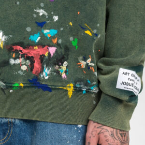 Bluza zachwyca charakterystycznym dla Gallery Dept. podejściem do customizacji – posiada malarskie detale naniesione ręcznie, efekt „worn effect”, który nadaje jej unikatowy vintage look, oraz duże, odważne logo na froncie. Każda sztuka różni się minimalnie rozmieszczeniem przetarć i farby, co sprawia, że jest jedyna w swoim rodzaju.